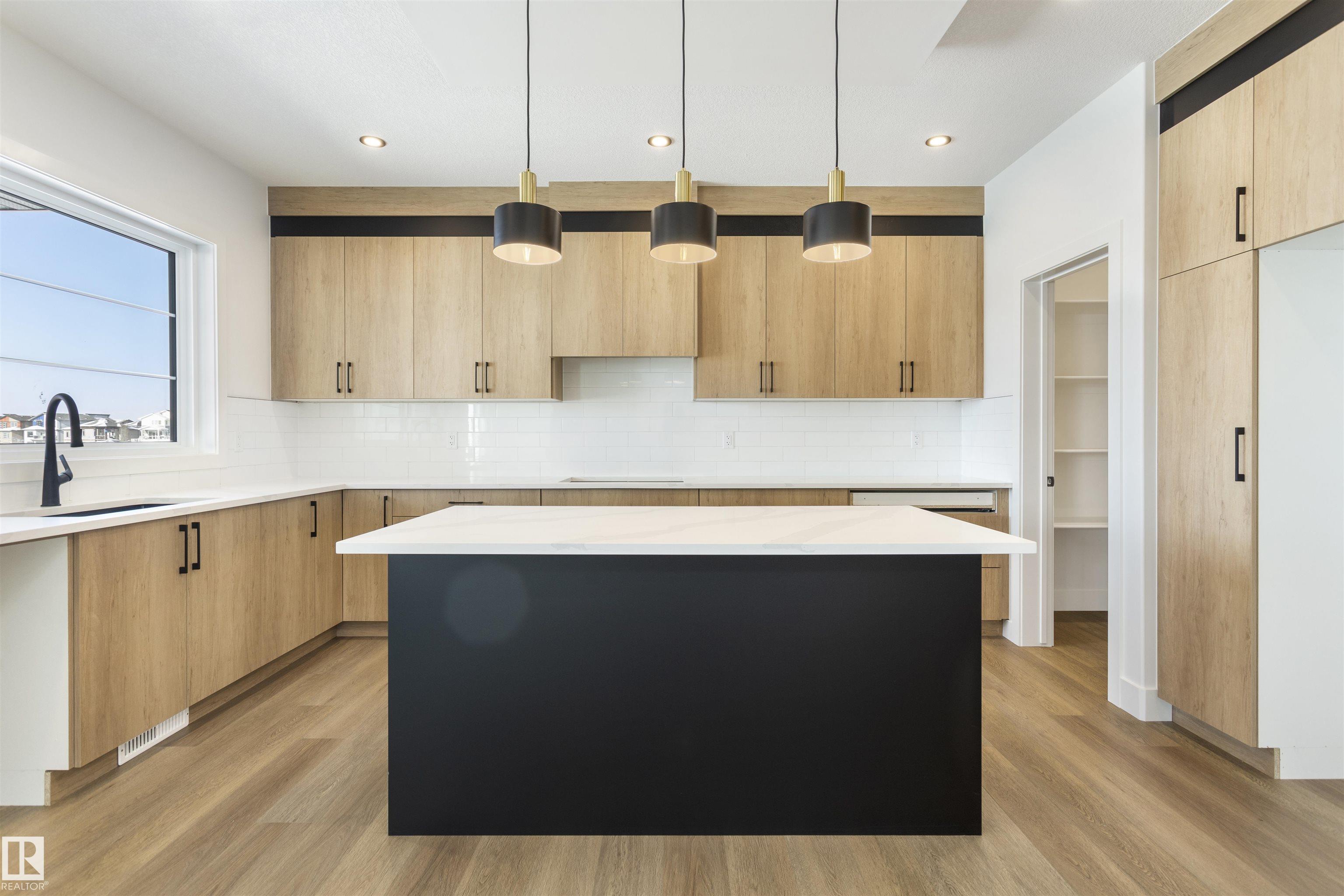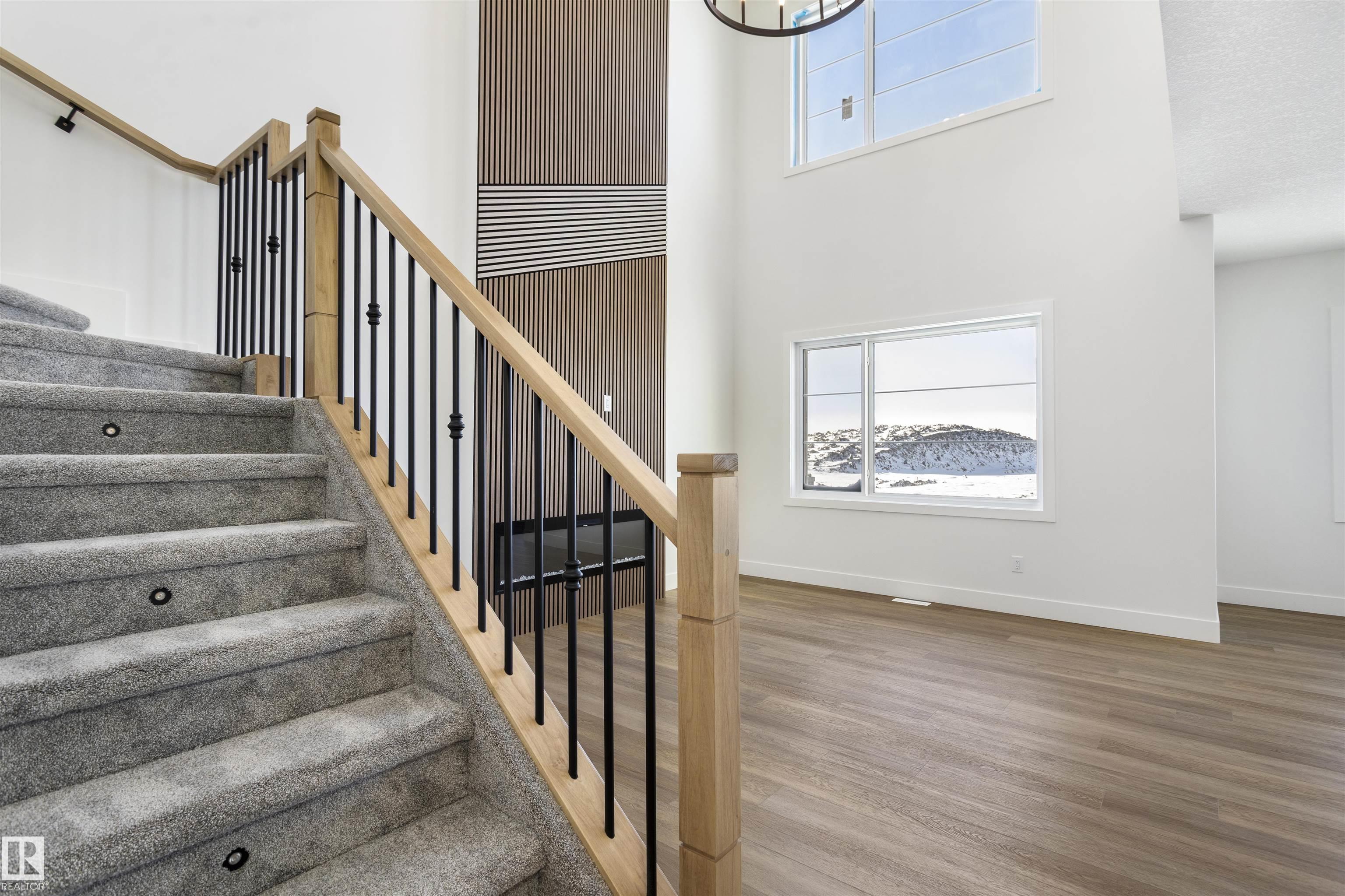 Backing onto a scenic pond and situated on a desirable corner lot in the Blackstone community of Leduc, this brand-new home with a triple attached garage offers an exceptional blend of space, style, and functionality. The main floor features a bedroom and full bathroom, ideal for guests or multi-generational living, along with a bright open-to-below living room with a fireplace that creates a warm and inviting atmosphere. The beautifully designed wrap-around kitchen includes quartz countertops, modern cabin...
