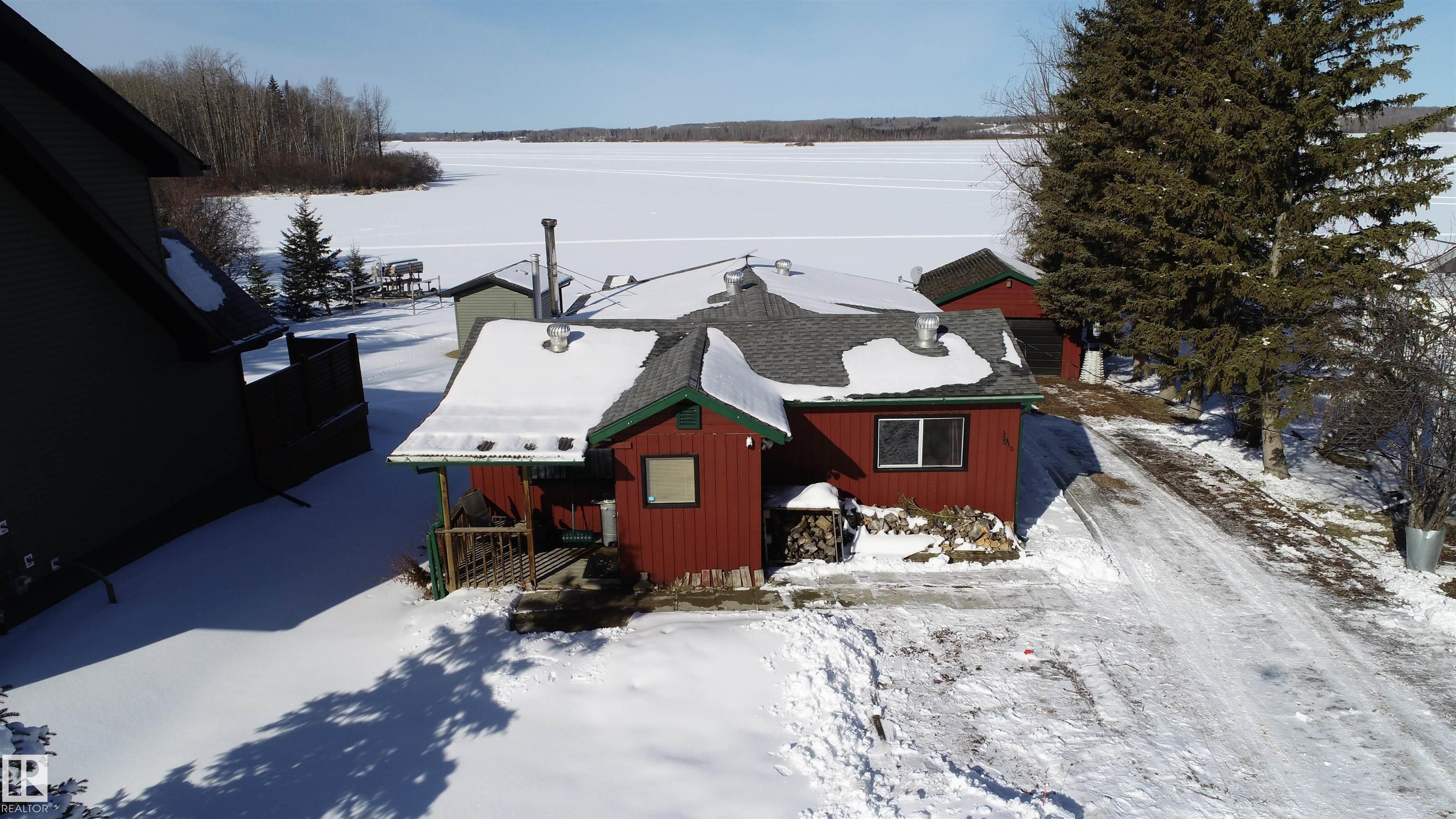 Amazing sunsets at this FOUR season WATERFRONT cottage at Frys Beach. Are you looking for a lakefront retreat for your family? Or are you needing a place to call home at the lake? Look no further than this 2 bedroom bungalow with massive great room. Enjoy morning coffees or evening beverages on your lakeside deck and even be sometimes greeted by the local wildlife. Large kitchen and dining area welcome you as you enter. Enjoy the lakeview from the living room complete with wood burning fireplace. Great size...